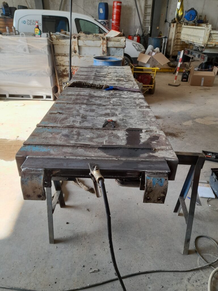 De 1.30 m à 2mStand de marché réglable en hauteur et en longueur. Répond aux besoins d’un commerçant ambulant . Demande d’une entreprise de maçonnerie pour gratter des murs en terre. Sur mesure pour adapter à leur outil.Deuxième plateau pour des maçons terre qui leurs permettra d’avoir un rendu plus fin. Rampes de remorque de porte engin pour un poids lourd.Travail effectué pour une entreprise de travaux publics.
